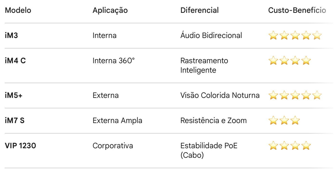 - O Top 5 de câmeras Intelbras mais buscadas, segmentadas para cada bolso.